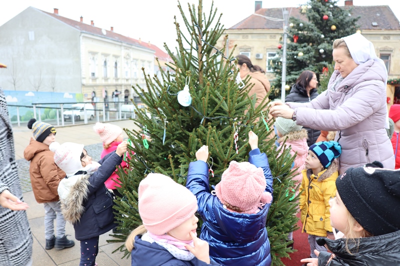 Djeca ukrasila božićna drvca na Strossmayerovom trgu