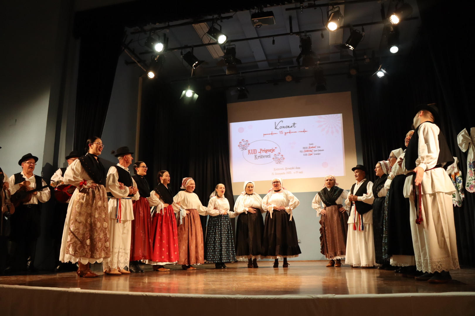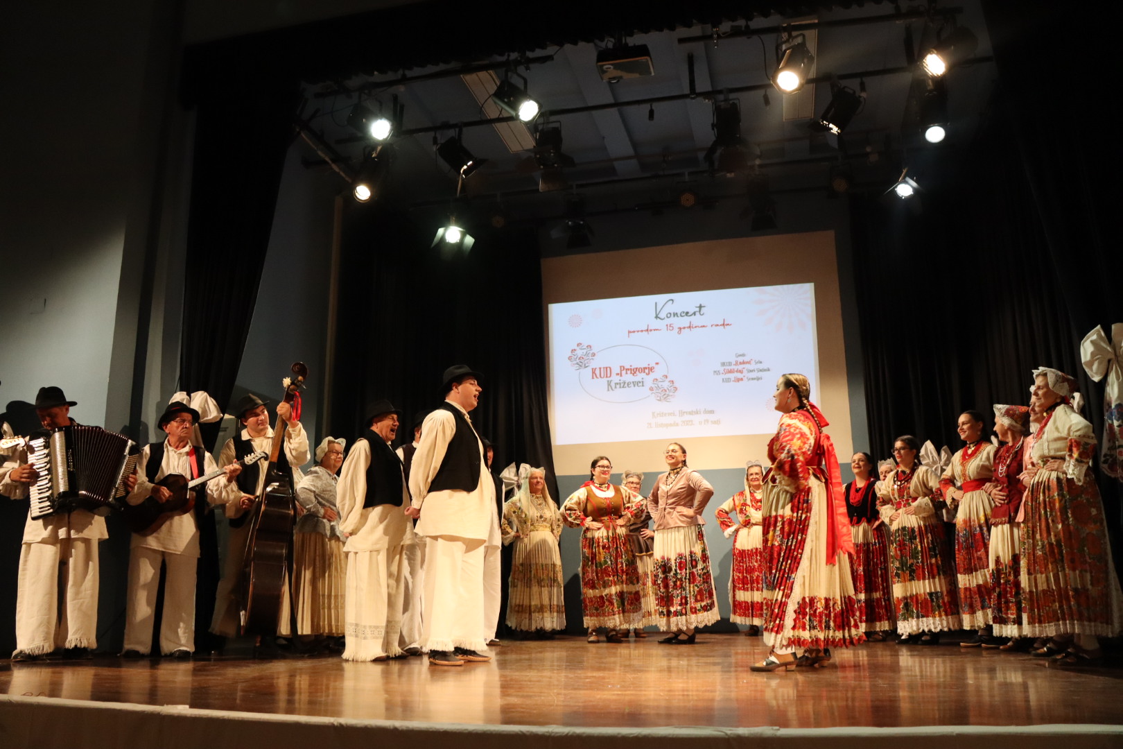 U subotu, 21.listopada, u Velikoj dvorani Hrvatskoga dama održan je koncert povodom 15 godina rada Kulturno-umjetničkog društva “Prigorje” Križevci. Društvo njeguje izvorni folklor; plesove, napjeve i običaje potkalničkog Prigorja, ali i Bilogore s kojom su usko povezani. Folklorna skupina je mješovite životne dobi i nastoji što je moguće više na izvorni način prikazati pjesme, plesove i običaje svoga zavičaja. Članovi Društva izveli su pjesme i plesove Prigorja – u starijim nošnjama, radnu varijantu, a u novim nošnjama, svečanu varijantu. Također, predstavili su se plesom, pjesmama i nošnjama Bilogore te Glogovnice. Između ostaloga, ženska folklorna skupina koja djeluje unutar Kulturnog umjetničkog društva “Prigorje” Križevci otpjevala je i svatovske napjeve.