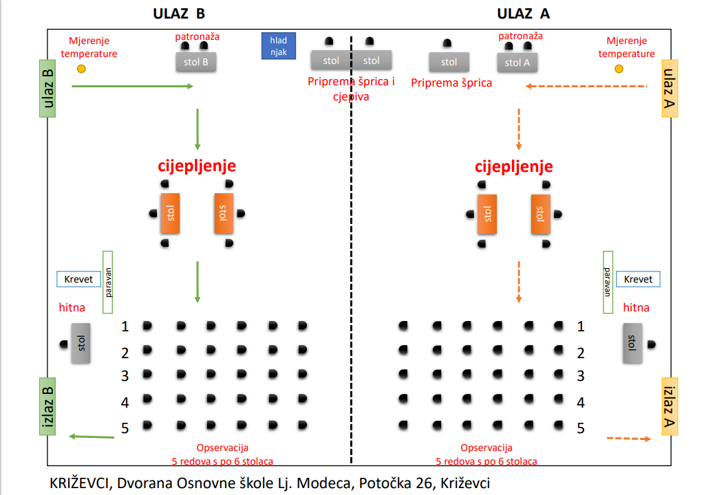 Cijepljenje je organizirano na dva punkta prema sljedećem rasporedu: