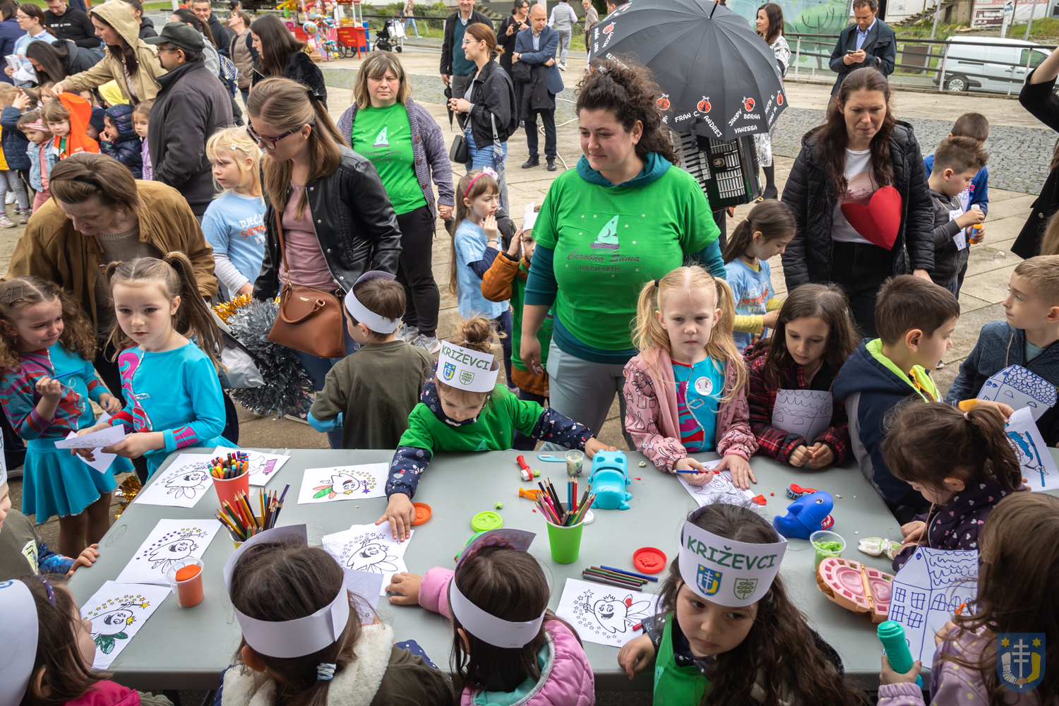 U 10,00 sati uslijedio je zabavni program djece na Strossmayerovom trgu i zabavno-edukativne radionice za djecu u sklopu projekta Zubić pod vodstvom dr.med.dent. Sare Krog. Prvo dio današnjeg slavlja završio je podjelom rođendanske torte građanima. Prvi rez na torti napravio je gradonačelnik Mario Rajn nakon čega su građanima tortu dijelili učenici Srednje škole „Ivan Seljanec“ Križevci. Pored izložbe Križevačkog likovnog kruga i dječjih vrtića, Sportskih igara mladih, Utrke ulicama grada i humanitarne utrke za Udrugu „Maslačak“ važno je naglasiti kako će Dan grada Križevaca završiti svečanom sjednicom s dodjelom javnih priznanja u Velikoj dvorani Hrvatskoga doma i koncertom najljepših pjesama Olivera Dragojevića koje će izvesti Tedi Grubica i Medea s početkom u 19,30 sati na Strossmayerovom trgu.