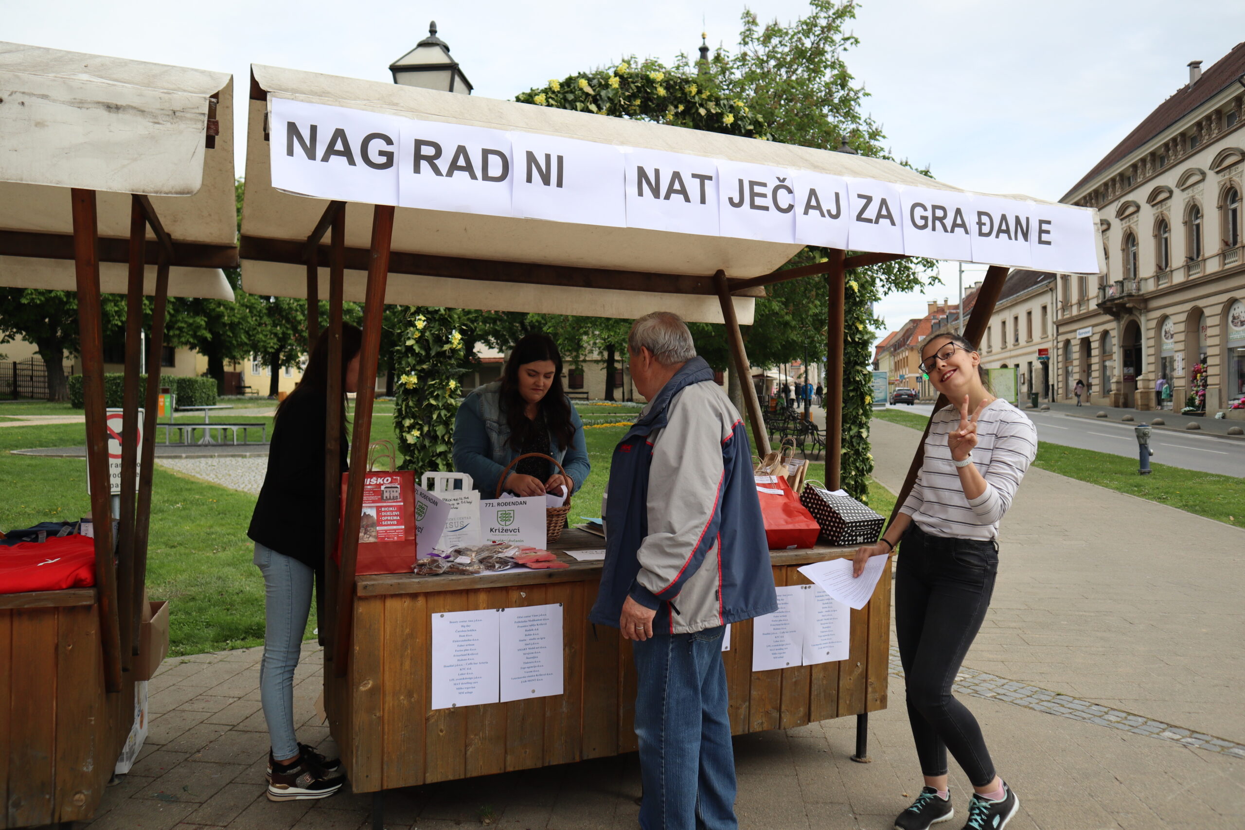Obilježavanje 771. rođendana Grada Križevaca krenulo je u jutarnjim satima na Nemčićevom i Strossmayerovom trgu. Od 09,00 do 12,00 sati tradicionalno se održao nagradni natječaj za građane u koji se priključio do sada najveći broj poduzetnika i obrtnika s područja grada. Ove godine brojnim poklon paketima i bonovima uključili su se Beauty centar Ana j.d.o.o., Big day, obrt za usluge, Čarobna heklica, Dom d.o.o., Elektrotehnika d.o.o., Faber artisan, Fortes plus d.o.o., Frizerland Križevci, Hedona d.o.o., Houdini j.d.o.o. – Caffe bar Arteria, KTC d.d., Lahor d.o.o., LPL event&design j.d.o.o., MAT detailing cars, Miško trgovina, MM usluge, obrt za usluge, Očni centar Visus j.d.o.o., Poliklinika Medikadent d.o.o., Praonica rublja Križevci, Radnik d.d., Robin d.o.o., Simba – studio za igru, Sinči j.d.o.o., SMART Mobil net d.o.o., Strojrem d.o.o., Škatuljica, Tinktura d.o.o., Trgo-agencija d.o.o., Ustanova Mediviva plus, Vacom d.o.o., Veterinarska stanica Križevci d.o.o. i ZAR-MONT d.o.o.
