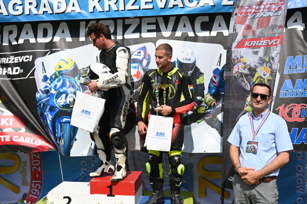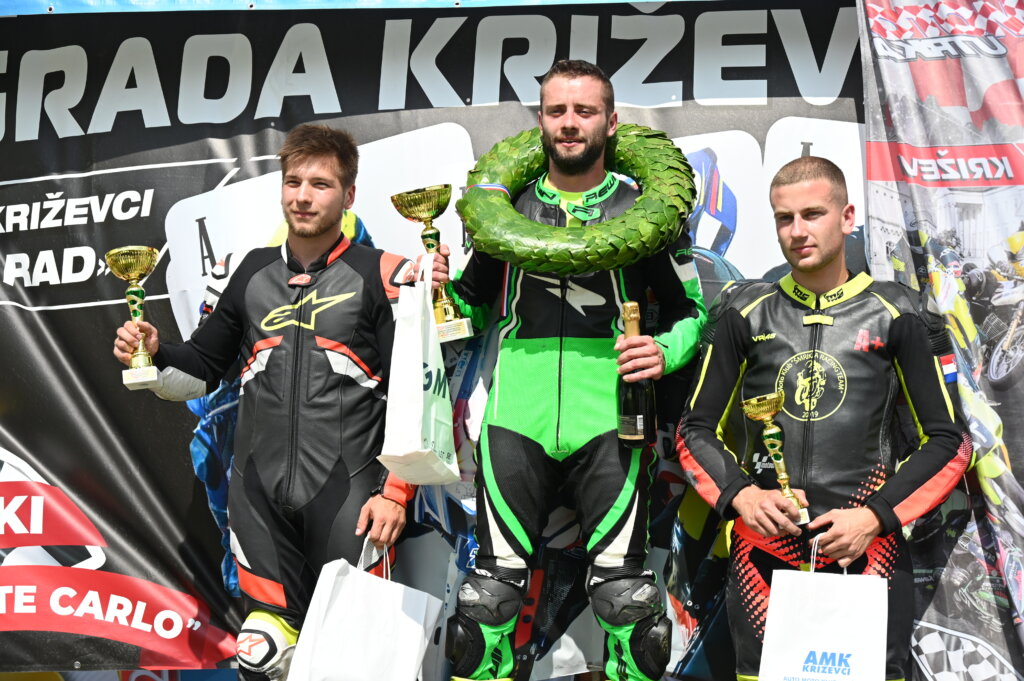 Motociklistički klub Križevci organizirao je u nedjelju utrku za otvoreno prvenstvo Hrvatske u klasama brzinaca, skuteraša i oldtimera. Na popularnoj gornjogradskoj stazi od milja zvanoj Monte Carlo okupilo se više od stotinu vozača u svim klasama, a natjecanje je podržala i brojna publika. Najzanimljivije su, naravno, bile utrke brzinaca. U 125 SP, pobijedio je Mislav Perkušić ispred Danijela Koprića i Davora Buntaka, u klasi 600 SST slavio je Karlo Gršić ispred Lorisa Majcana i Karla Borka, a u klasi 1000 SST nadmoćno je pobijedio Križevčanin Luka Nervo ispred Antonija Čika i Thibauta Doutrea. MK Križevci je pobijedio i kod klubova. Kod skuteraša u klasi Open pobijedio je Filip Čejić ispred Marina Di Leonarda i Matije Svetića, u klasi No Limit slavio je Davide Di Leonardo ispred Stefana Carevića i Matije Blaževca i u klasi 50 pobijedio je Luka Huzjak ispred Borne Konfica i Filipa Čandrlića. U međunarodnom poretku klubova prvi je MK Di Leonardo, drugi MK Križevci i treći MK Šmrika Racing team. Kod oldtimera. U klasi 1 pobijedio je Frano Usmiani ispred Mladena Orejaša i Tihomira Roška. U klasi 2. slavio je Toni Žabjačan ispred Nikole Rajaka. U klasi 3. na najvišoj pobjedničkoj stepenici bio je Andrija Rončević koji je bio brži od Domagoja Belanija i Tomislava Bartolca, U klasi 4. pobijedio je Janez Marolt ispred Heidi Fabjana i Tomaža Jeseneka.