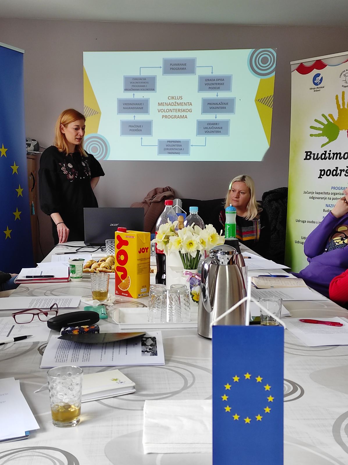 U okviru EU projekta “Budimo ruka podrške” Udruga „Maslačak“ Križevci organizirala je radionicu “Upravljanje volontiranjem posebno uslijed kriznih situacija”, 14. i 15.03. u kući u Gundulićevoj ulici u Križevcima. Radionicu su vodile Jelena Kamenko Mayer i Mirna Šostarko iz Hrvatskog centra za razvoj volonterstva iz Osijeka.