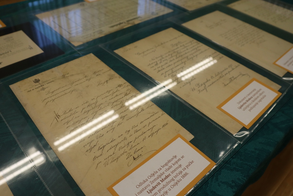 Nakon programa u sportskoj dvorani, u prizemlju škole otvorena je izložba o Ljudevitu Modecu uz predstavljanje knjige pod nazivom „Izbor iz djela Ljudevita Modeca“ koje su priredile profesorice Martina Valec-Rebić i Danijela Zagorec. Ovaj događaj su zajednički priredili Osnovna škola Ljudevita Modeca, Hrvatski školski muzej i Ogranak Matice hrvatske u Križevcima, a sudjelovali su ravnatelj škole dr.sc. Tomislav Bogdanović, knjižničarska savjetnica i kustosica dr.sc. Štefka Batinić, recenzent knjige prof. dr. sc. Nevio Šetić i priređivačice dok je događaj moderirala urednica knjige mr.sc. Renata Husinec. Otvorenju izložbe i predstavljanju knjige prisustvovali su brojnih posjetitelji među kojima su bili i gradonačelnik Mario Rajn te pročelnik Upravnog odjela za odgoj, obrazovanje, kulturu, sport, socijalnu skrb, nacionalne manjine i turizam Sandro Novosel.