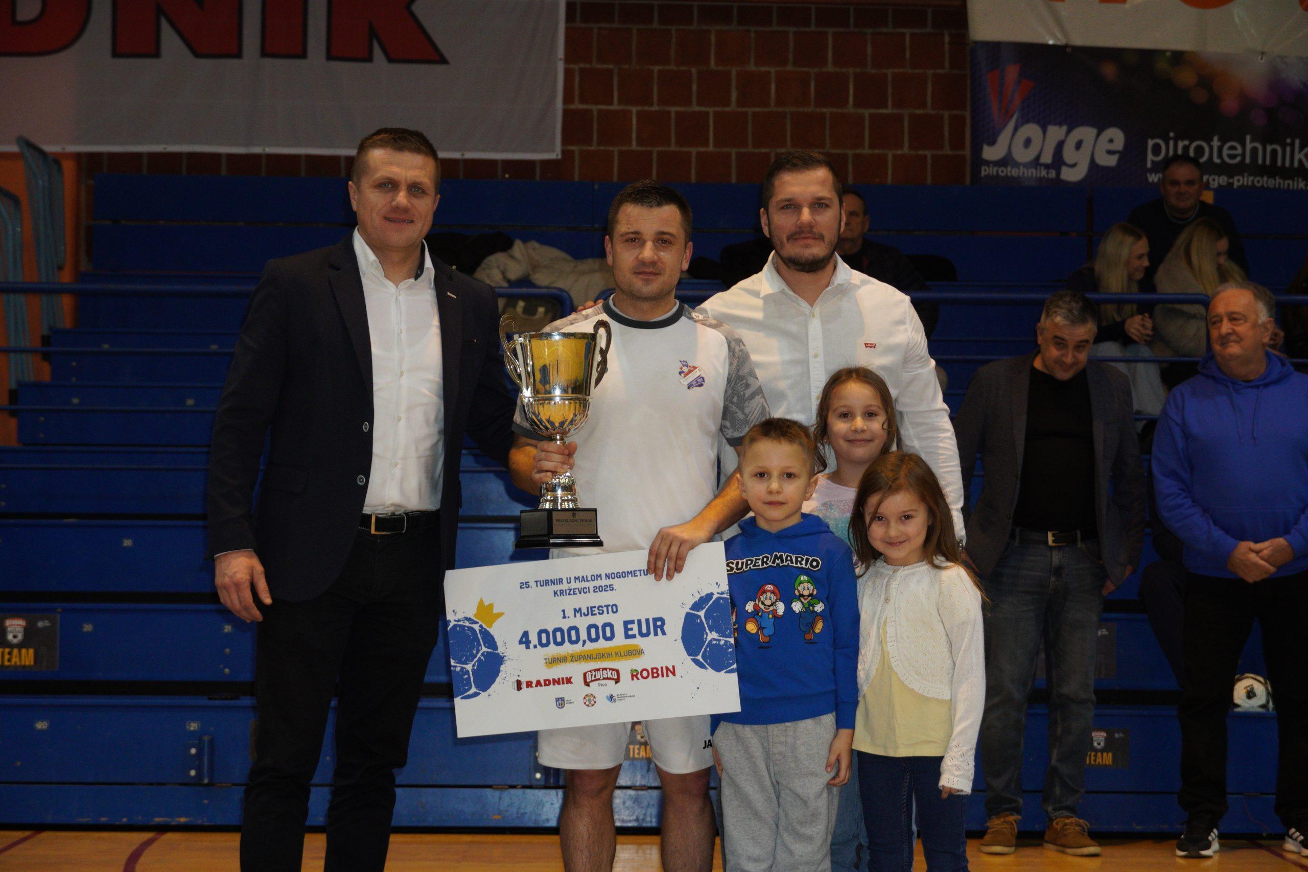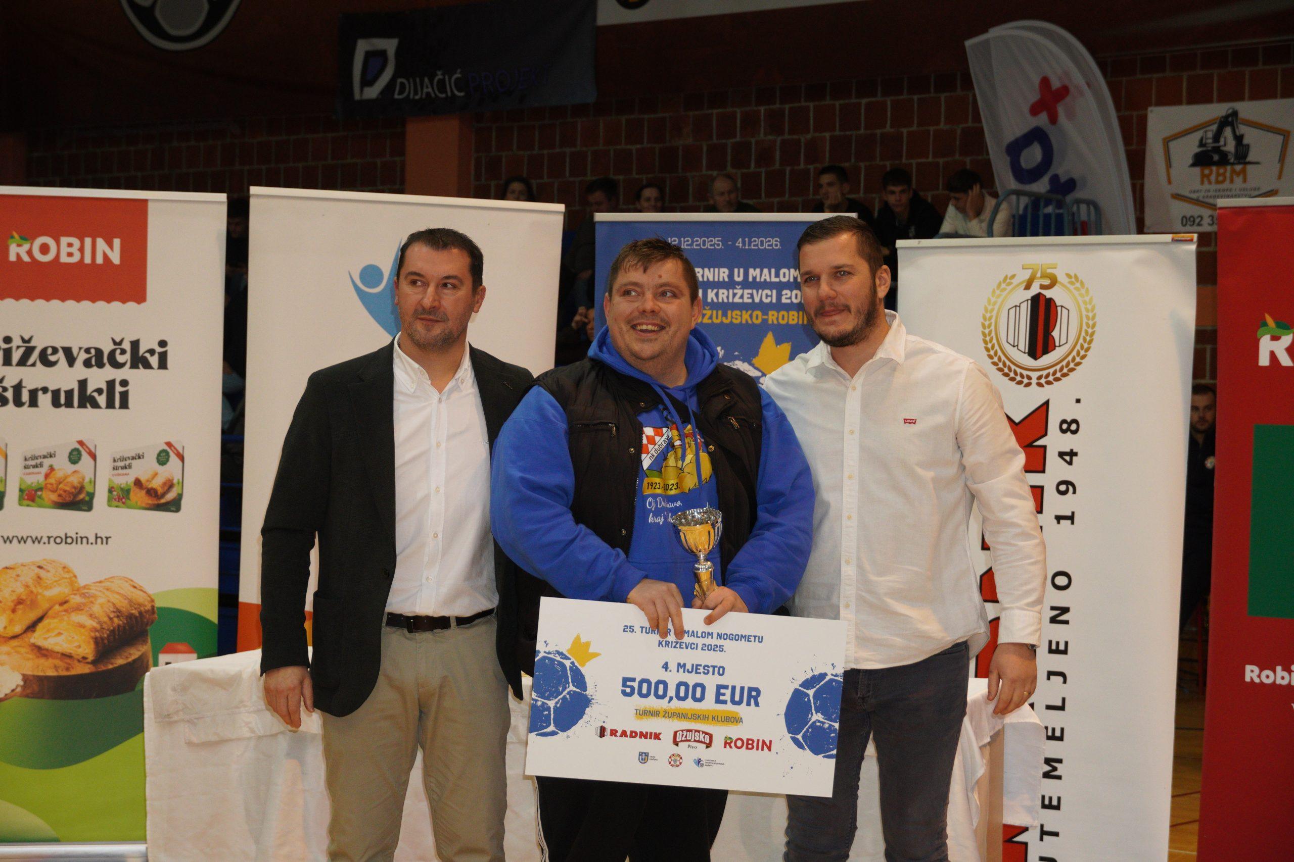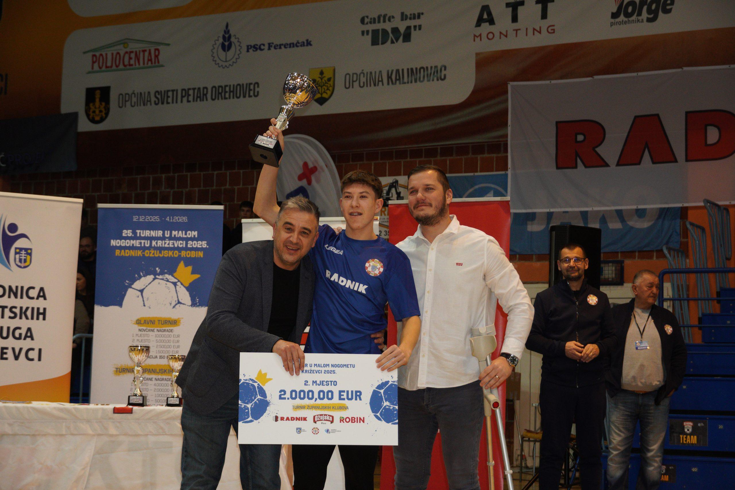 Turnir županijskih ligaša također je donio uzbuđenja i odlične utakmice. U velikom finalu NK Radnik Sv. Ivan Žabno pobijedio je NK Radnik-Križevci 2:0, dok je treće mjesto pripalo NK Ban Jelačiću. Igrači NK Radnika Križevci pokazali su borbenost i pravi sportski duh kroz cijeli turnir.