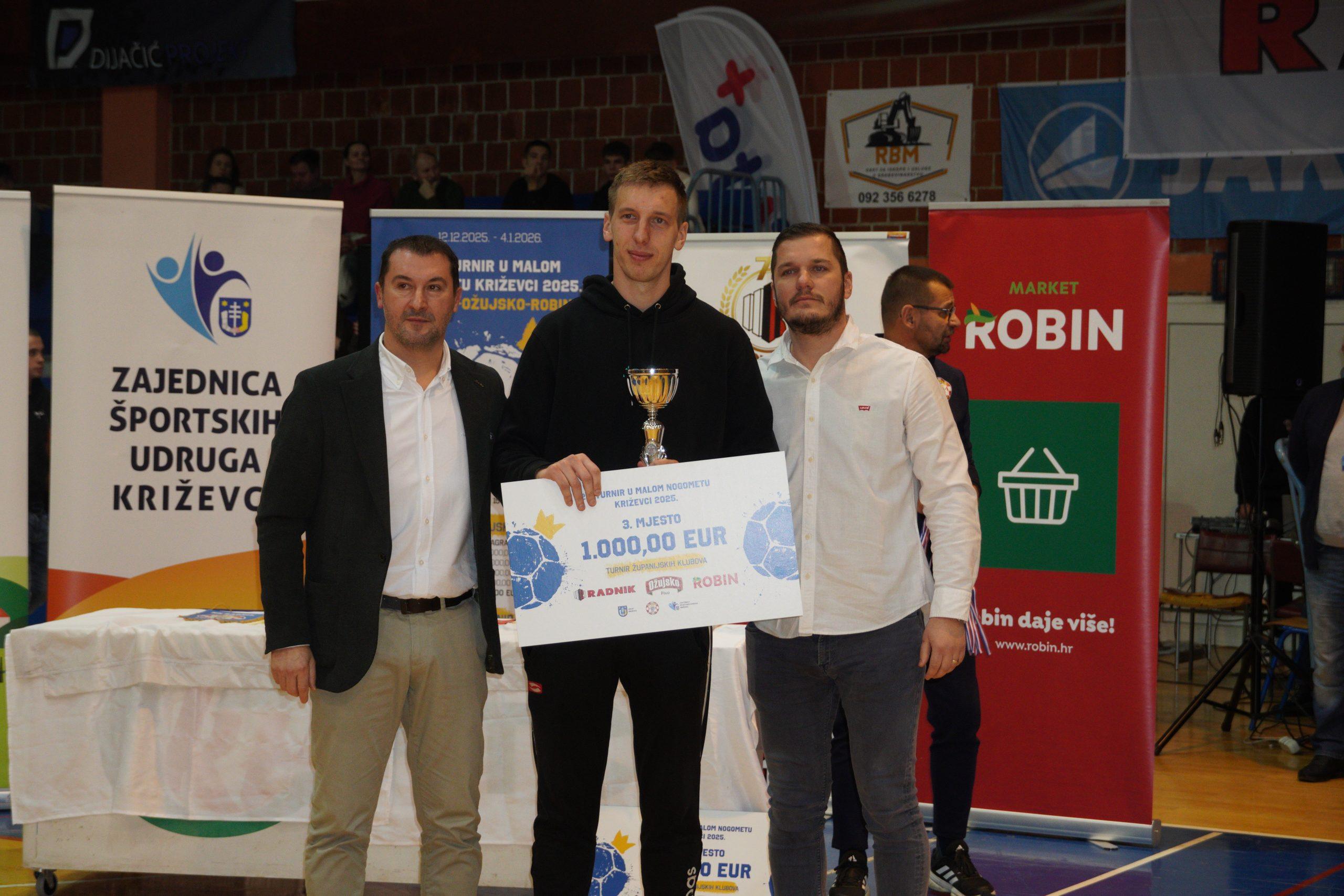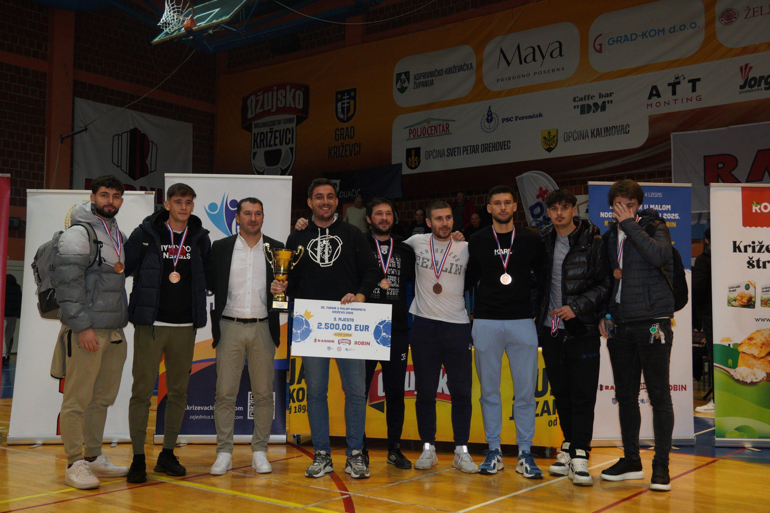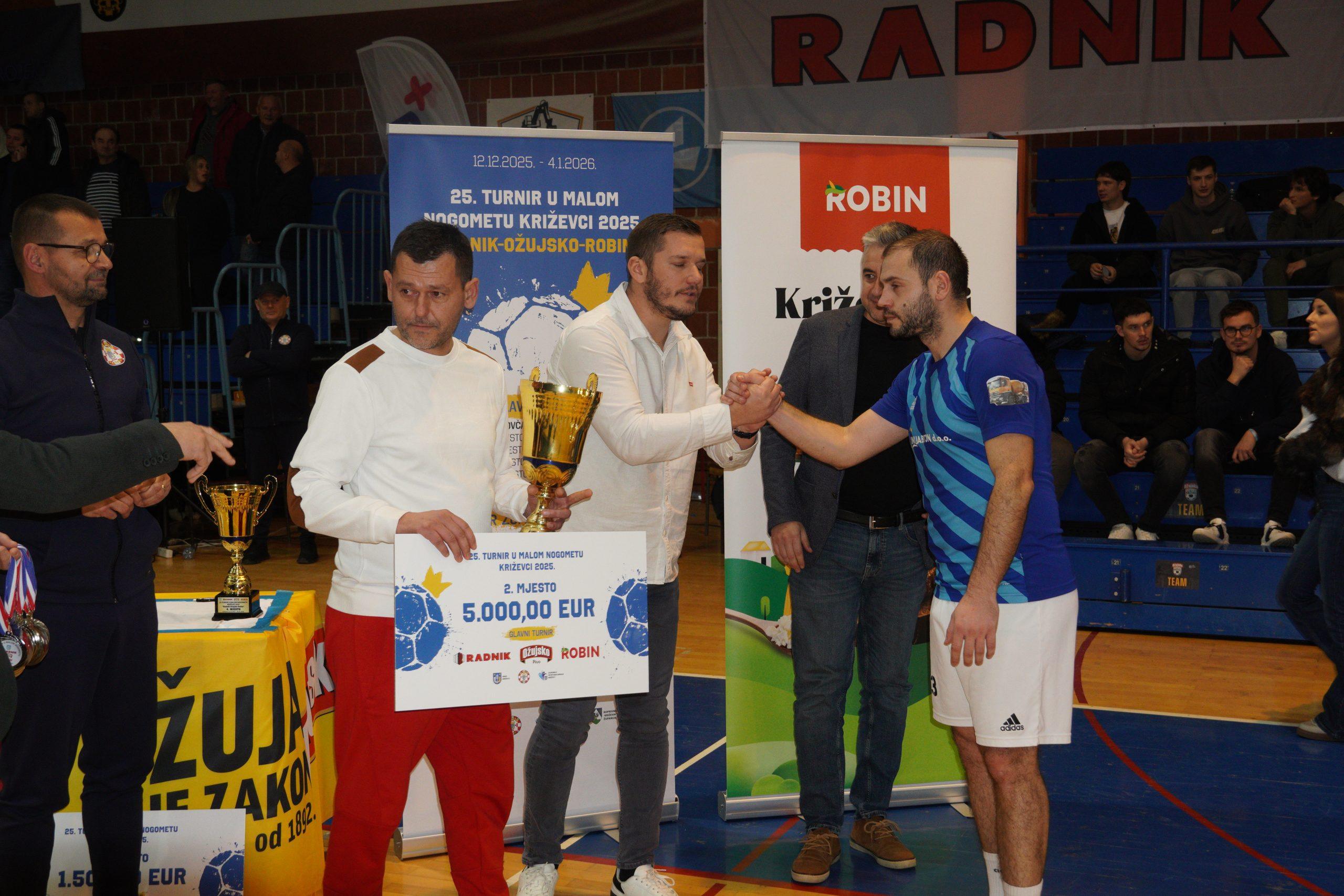 Turnir županijskih ligaša također je donio uzbuđenja i odlične utakmice. U velikom finalu NK Radnik Sv. Ivan Žabno pobijedio je NK Radnik-Križevci 2:0, dok je treće mjesto pripalo NK Ban Jelačiću. Igrači NK Radnika Križevci pokazali su borbenost i pravi sportski duh kroz cijeli turnir.