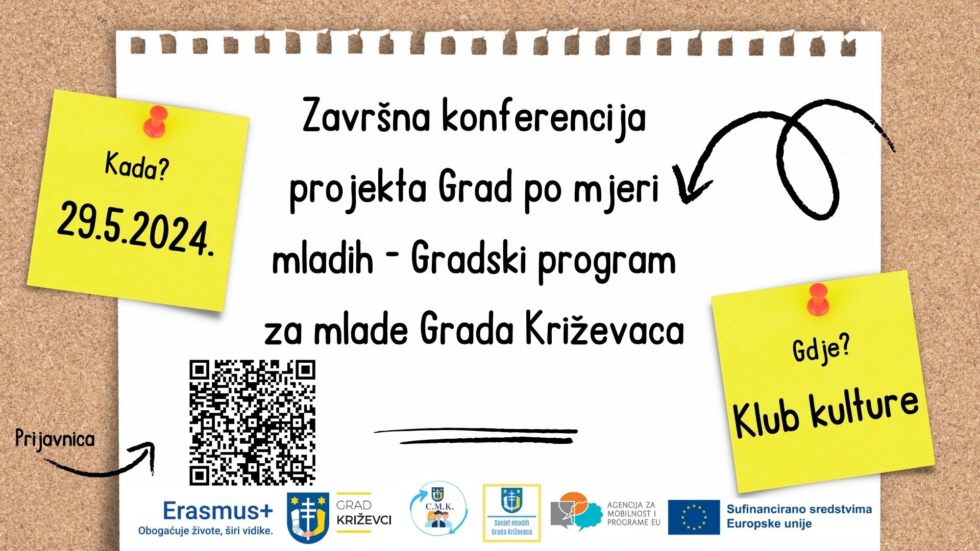 U sklopu projekta „Grad po mjeri mladih – Gradski program za mlade Grada Križevaca“, u srijedu, 29. svibnja u 12:00 sati u Klubu kulture održat će se završna konferencija ovog projekta.
