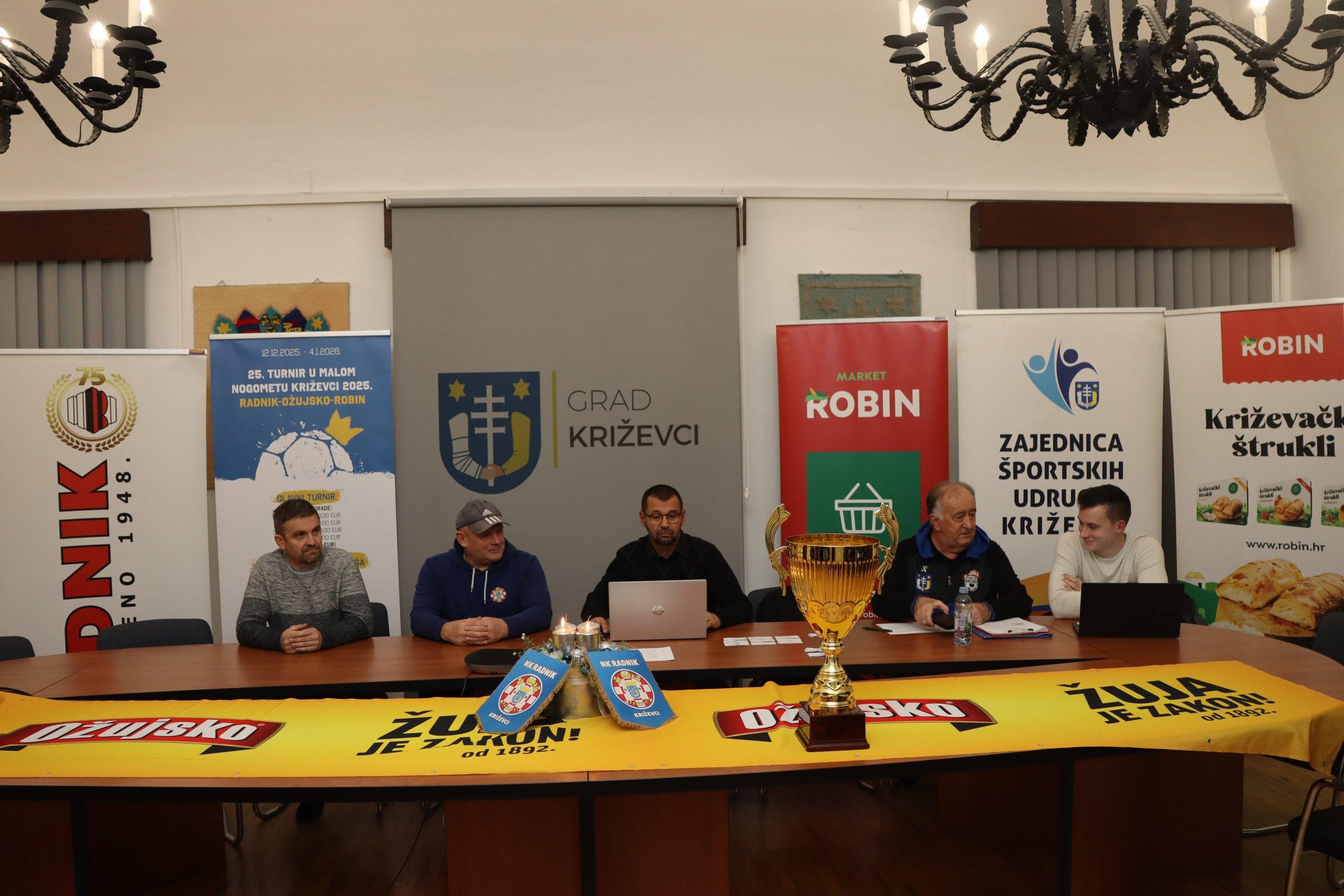 U prostorijama male vijećnice Grada Križevaca u utorak 9. prosinca 2025. izvučene su skupine 25. izdanja turnira u malom nogometu Križevci 2025 Radnik-Ožujsko-Robin i 7. turnira županijskih klubova Radnik-Ožujsko-Robin.