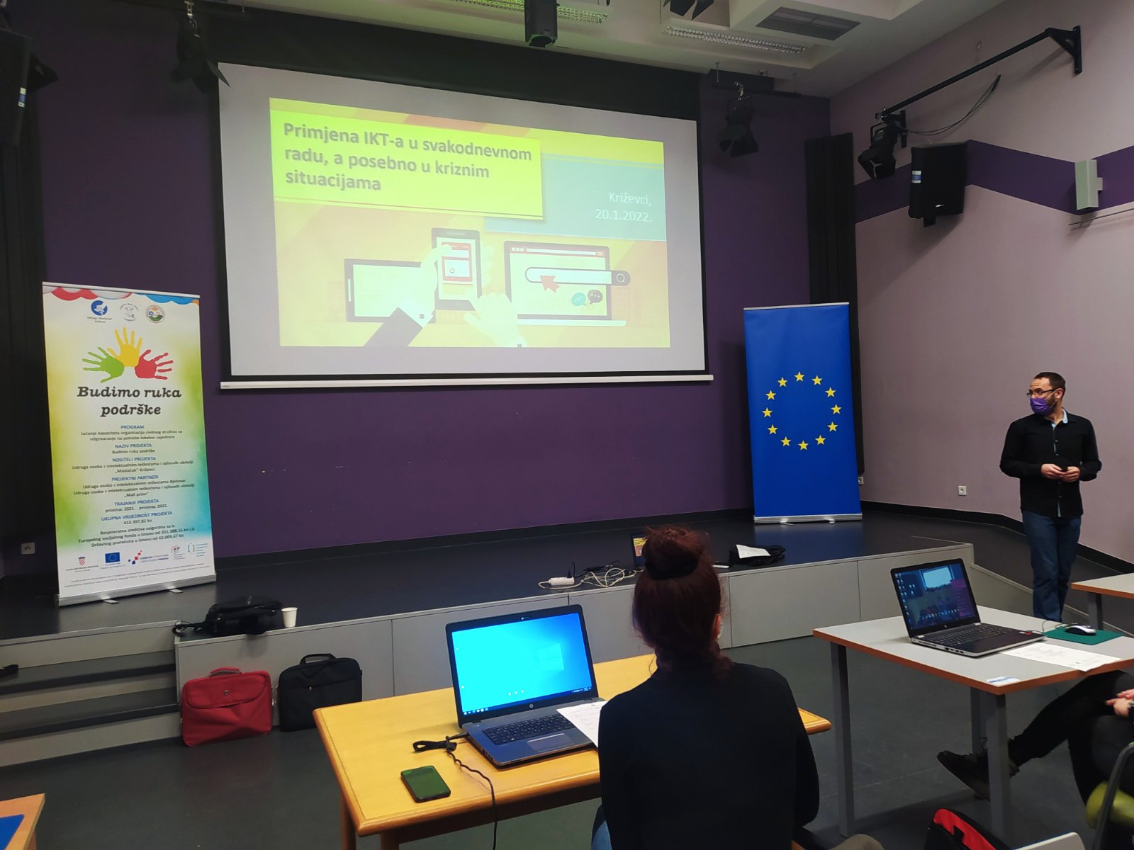 U okviru projekta „Budimo ruka podrške“ u četvrtak 20.01.2022. godine u Multimedijskoj dvorani, Gradske knjižnice “Franjo Marković” Križevci održana je radionica „Primjena informacijsko-komunikacijskih tehnologija u svakodnevnom radu, a posebno u kriznim situacijama“, radionicu je održao gdin. Marko Horvat, mag.educ.inf.