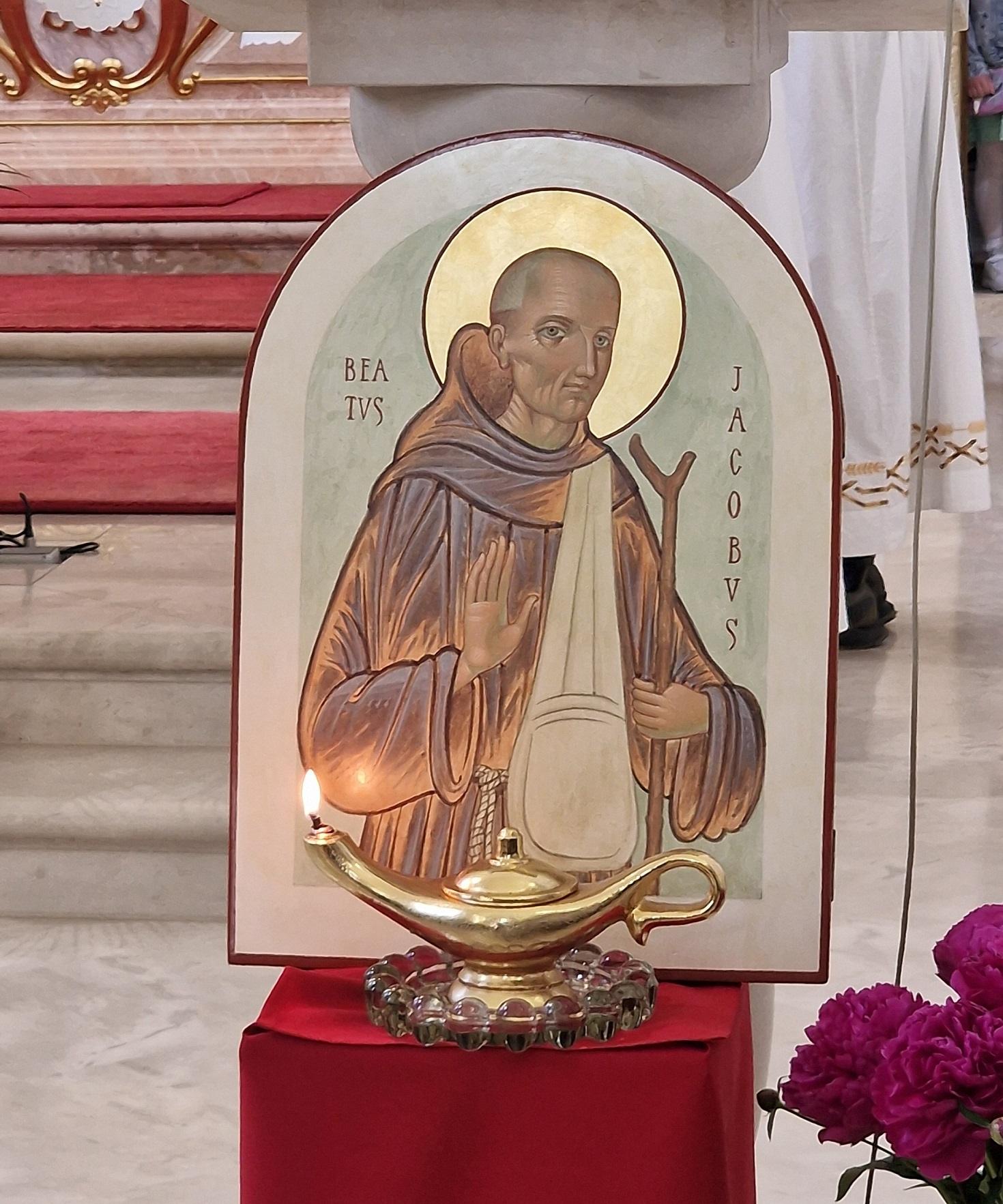 Uvodni program predstavljanja slavljenoga blaženika bio je povjeren doktorandici Hrvatskoga katoličkog sveučilišta Zadranki Hani Kilijan. Govorila je o blaženikovu životu i promicanju štovanja. Jakov Zadranin bio je franjevac iz Zadra, nije bio svećenik, a svetost je ostvario u Bitettu u Italiji tijekom 15. stoljeća. Tamo se i čuva njegovo gotovo neraspadnuto tijelo. Skupljao je milostinju, njegovao bolesne od kuge. U šezdesetak redovničkih godina služio je kao kuhar, vratar, vrtlar, sakristan. Neprekidno je molio, neumorno pomagao ljudima u potrebi, imao je dar proricanja. Bl. Jakova u Bitettu štuju kao zaštitika grada. Spomendan mu je 27. travnja. U tijeku je proces za njegovo proglašenje svetim.