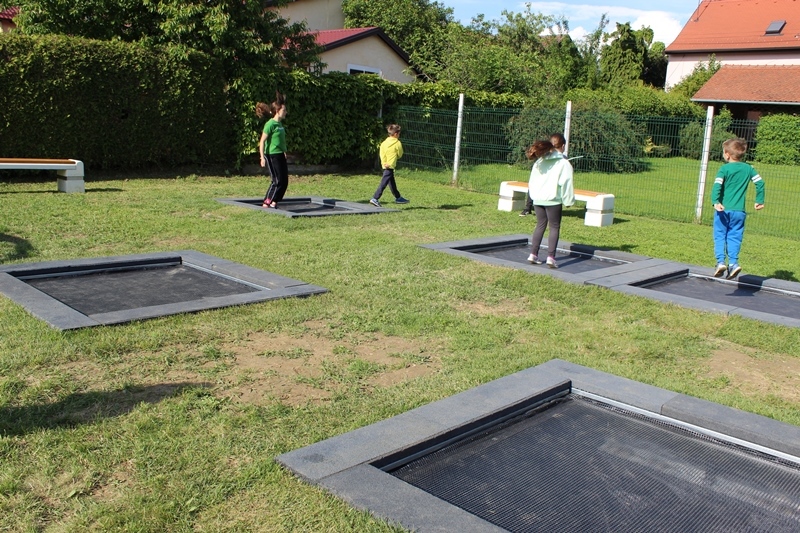 Ukupno je postavljeno 13 trampolina, pet većih i osam manjih, a riječ je o trampolinima najboljih europskih materijala, konstruiranih za intenzivnu upotrebu, koji su u ravnini s okolnim tlom i tako još više pristupačni korisnicima i maksimalno sigurni za skakače.