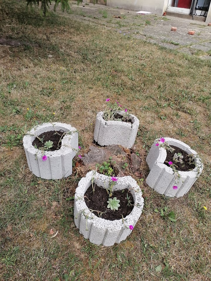 Stanari su, u manjem broju zbog godišnjih odmora i odlaska na more, od 8 sati ujutro krenuli s radom na opremanju mjesta za druženje. Od paleta smo napravili klupu i obojili ju sa zaštitnom bojom te postavili ispod lipe u hladovinu kako bi se stanari mogli družiti u bilo koje doba dana, posebice tijekom ljetnih vrućina. Posadili smo cvijeće u male betonske tegle- pustinjske ruže i čuvarkuće- da uljepšamo prostor biljkama koje su otporne na teže vremenske uvjete. Izgledaju super! Pokupili smo i sav otpad sa zelene površine. Nakon rada, osvježili smo se sokom i mineralnom vodom.