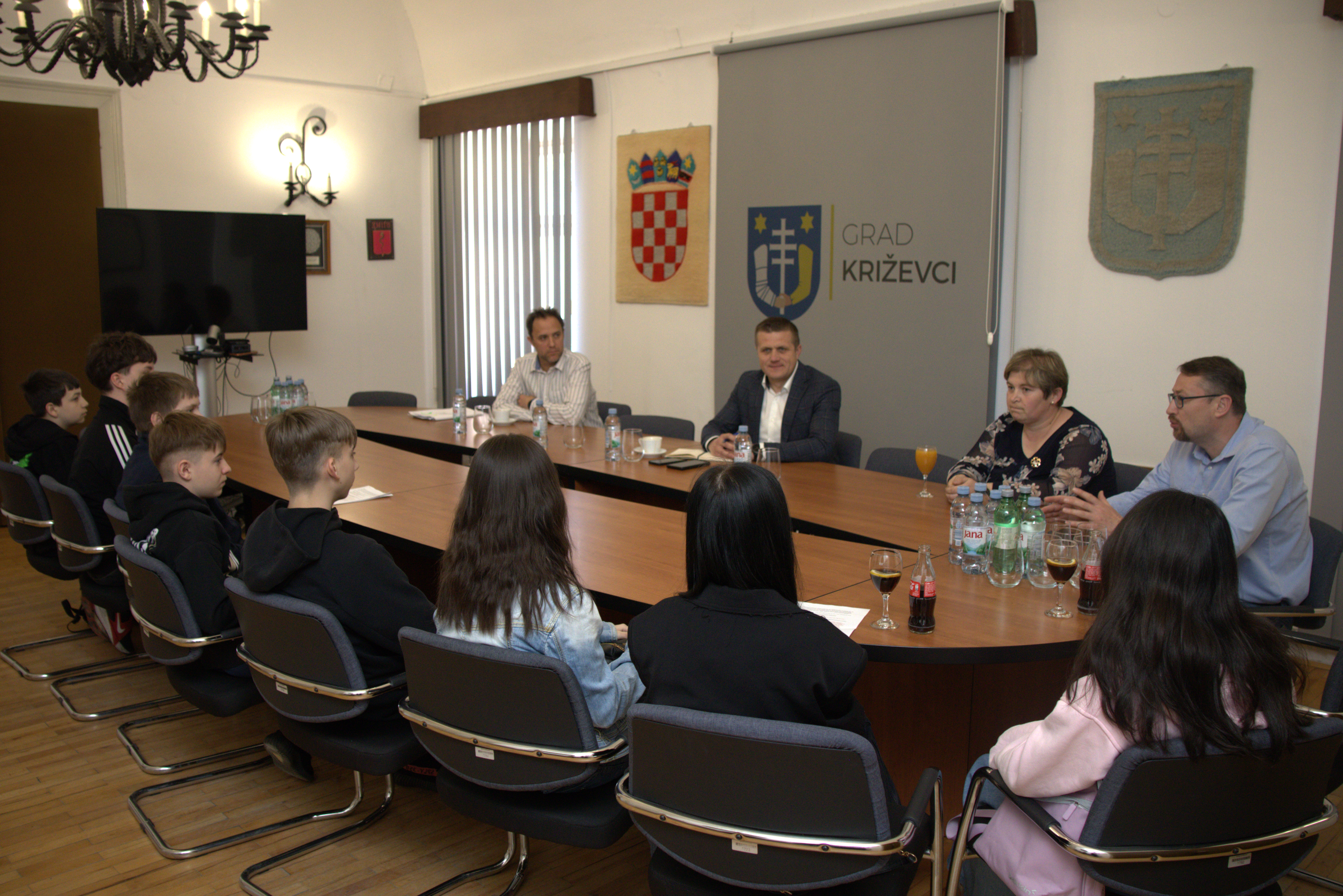 Učenici Osnovne škole Ljudevita Modeca, polaznici grupe Građanskog odgoja i obrazovanja, zajedno s ravnateljom Tomislavom Bogdanovićem i učiteljicom Nikolinom Hrg, posjetili su Gradsku upravu kako bi iz prve ruke saznali kako funkcionira lokalna zajednica. Osmero učenika od petog do osmog razreda razgovaralo je s gradonačelnikom Tomislavom Katanovićem i pročelnikom UO Sandrom Novoselom o temama koje izravno utječu na njihov život – od školstva i prometa do budućih radnih mjesta i mjesta za zabavu.