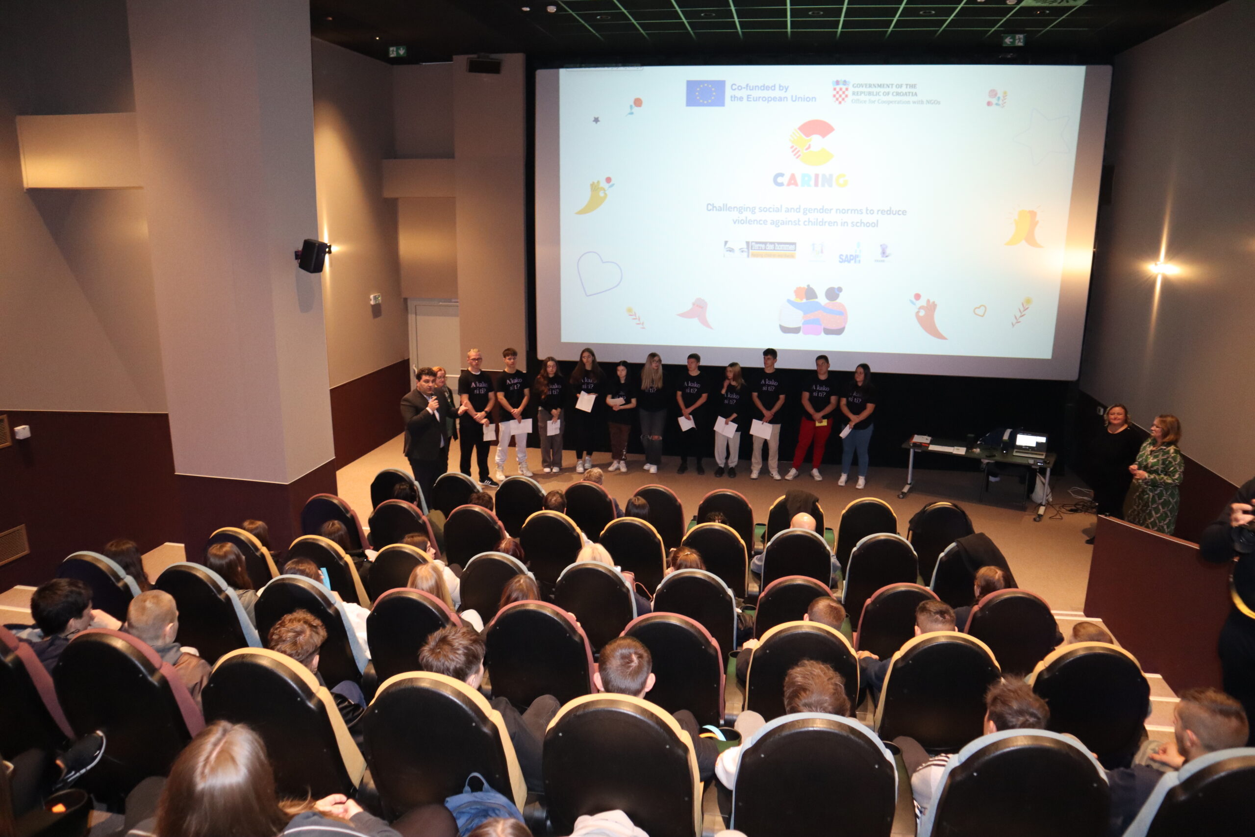 Srednja škola „Ivan Seljanec“ Križevci danas je u Kinu Križevci predstavila projekt „CARING – Preispitivanje društvenih i rodnih normi za smanjenje nasilja nad mladima u školi“. U uvodnom govoru ravnateljica Gordana Juran Ratković istaknula je kako je njihova škola jedna od osam škola u Hrvatskoj koje su odabrane za sudjelovanje u ovom projektu Hrabrog telefona te je zahvalila svim učenicima, njihovim roditeljima, nastavnicima i voditeljici projekta na uspješno provedenim projektnim aktivnostima.
